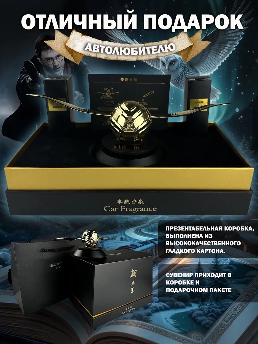 Этот автопарфюм, духи, вонючка, пахучка, арома, запах сочетает в себе практичность освежителя воздуха и эстетическую привлекательность декоративного элемента. Это не просто ароматизатор, это Снитч во вселенной Гарри Поттера и яркий аксессуар, который подчеркнет вашу индивидуальность.